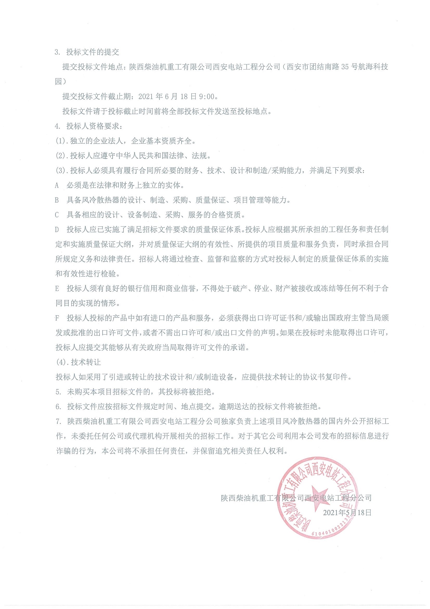 浙江三澳項(xiàng)目、田灣78&徐大堡34UBN項(xiàng)目、Z項(xiàng)目風(fēng)冷散熱器招標(biāo)公告