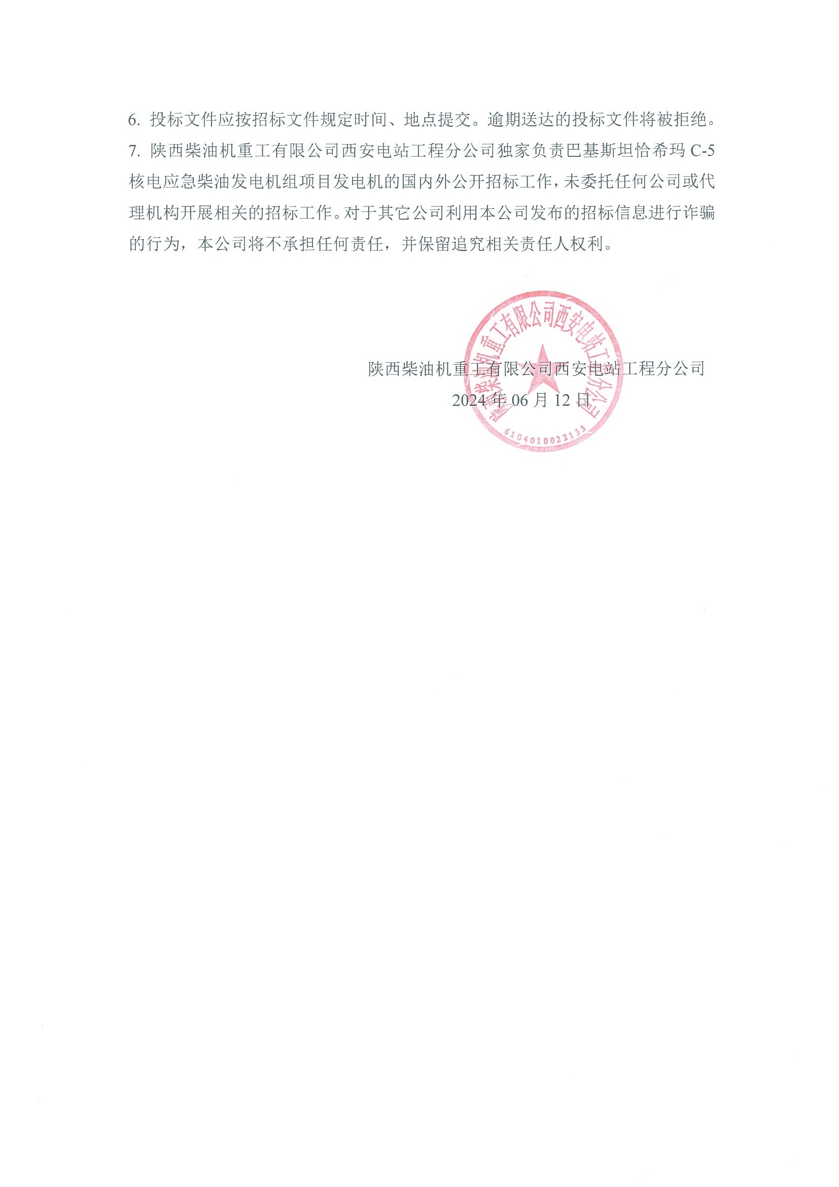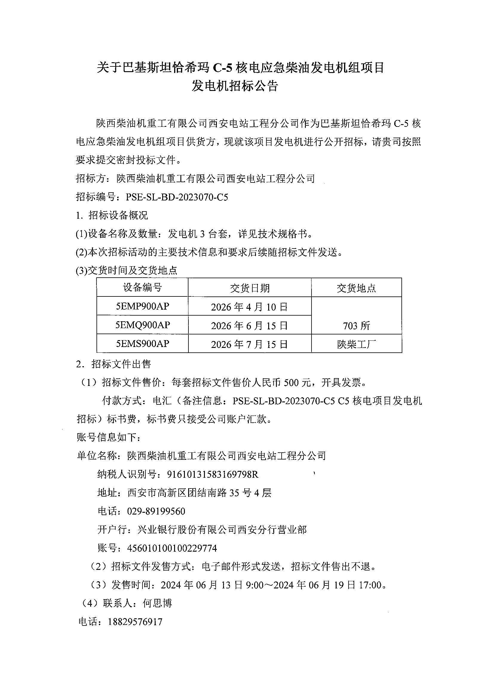 關于巴基斯坦恰希瑪C-5核電應急柴油發電機組項目發電機招標公告