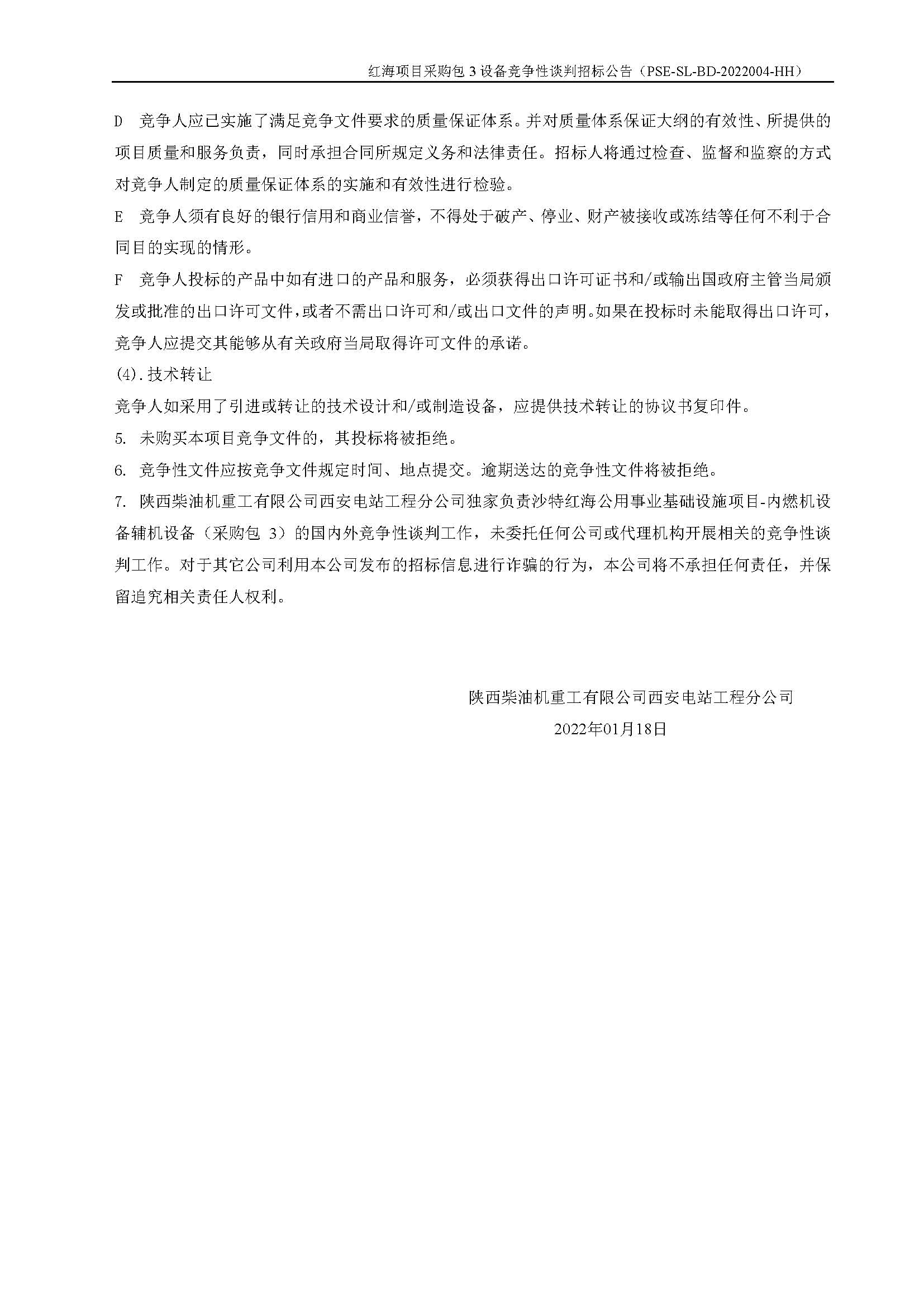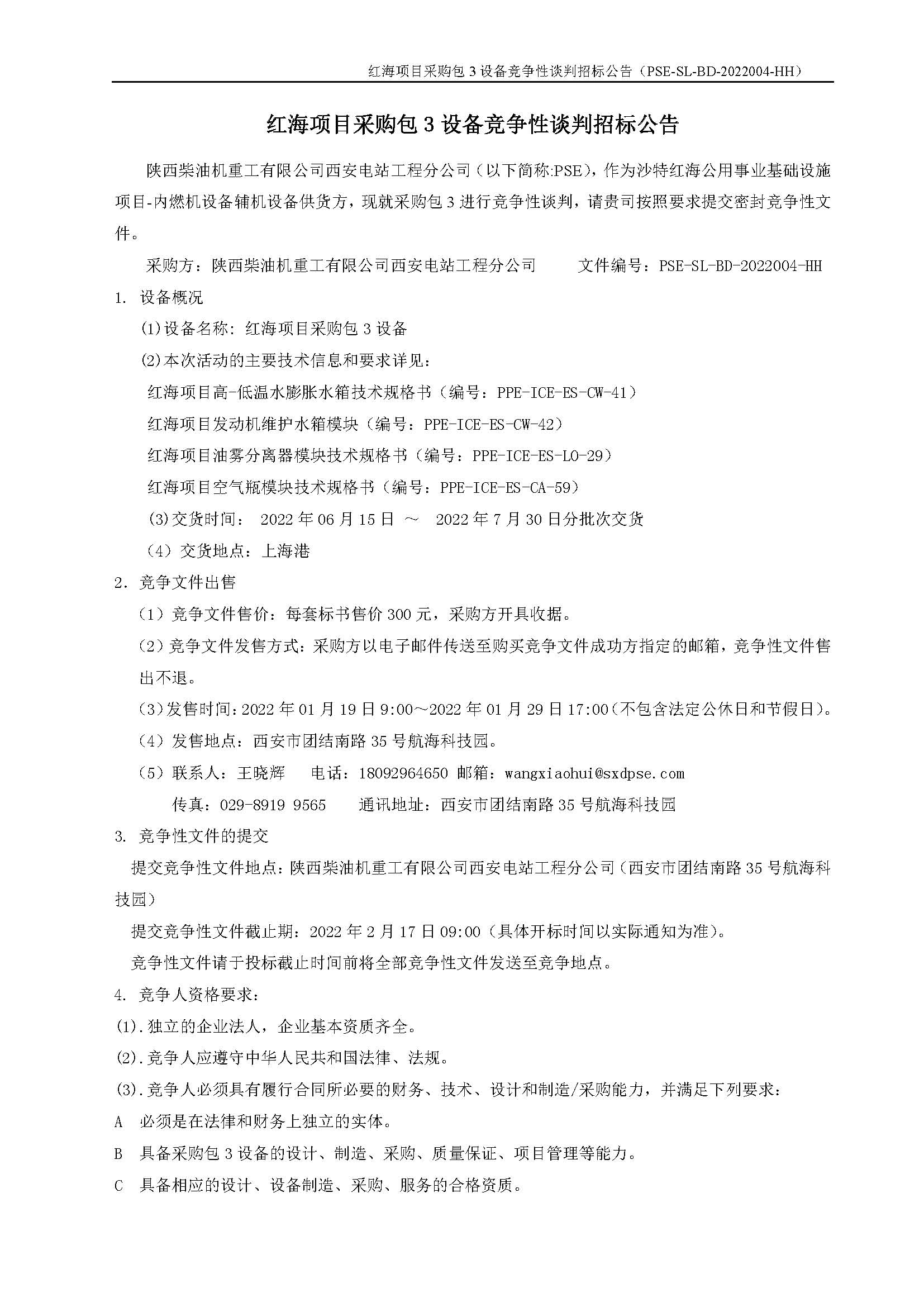 紅海項(xiàng)目采購包3設(shè)備競爭性談判招標(biāo)公告