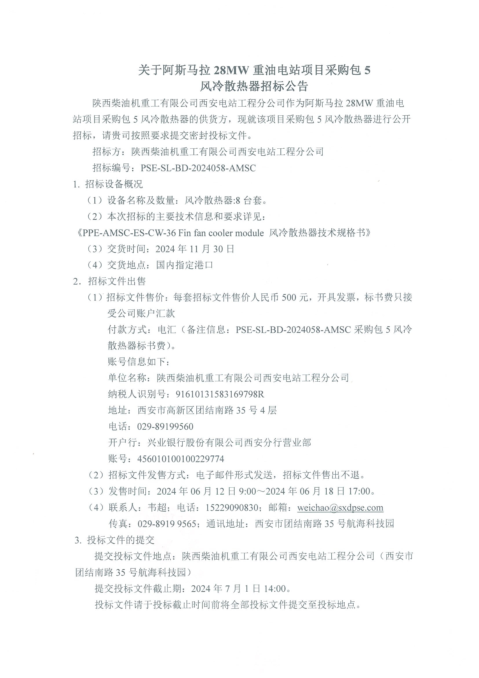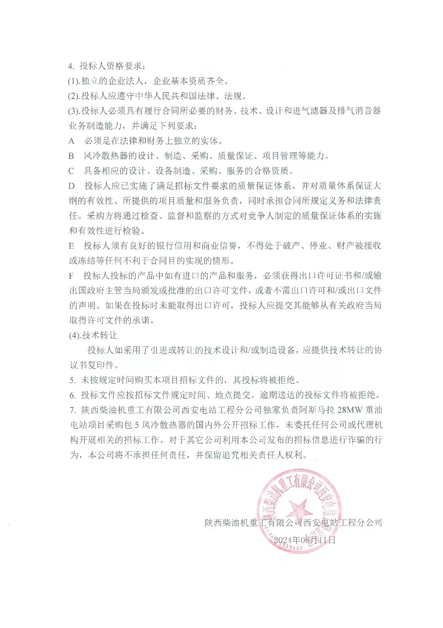 關(guān)于阿斯馬拉28MW重油電站項(xiàng)目采購包5風(fēng)冷散熱器招標(biāo)公告