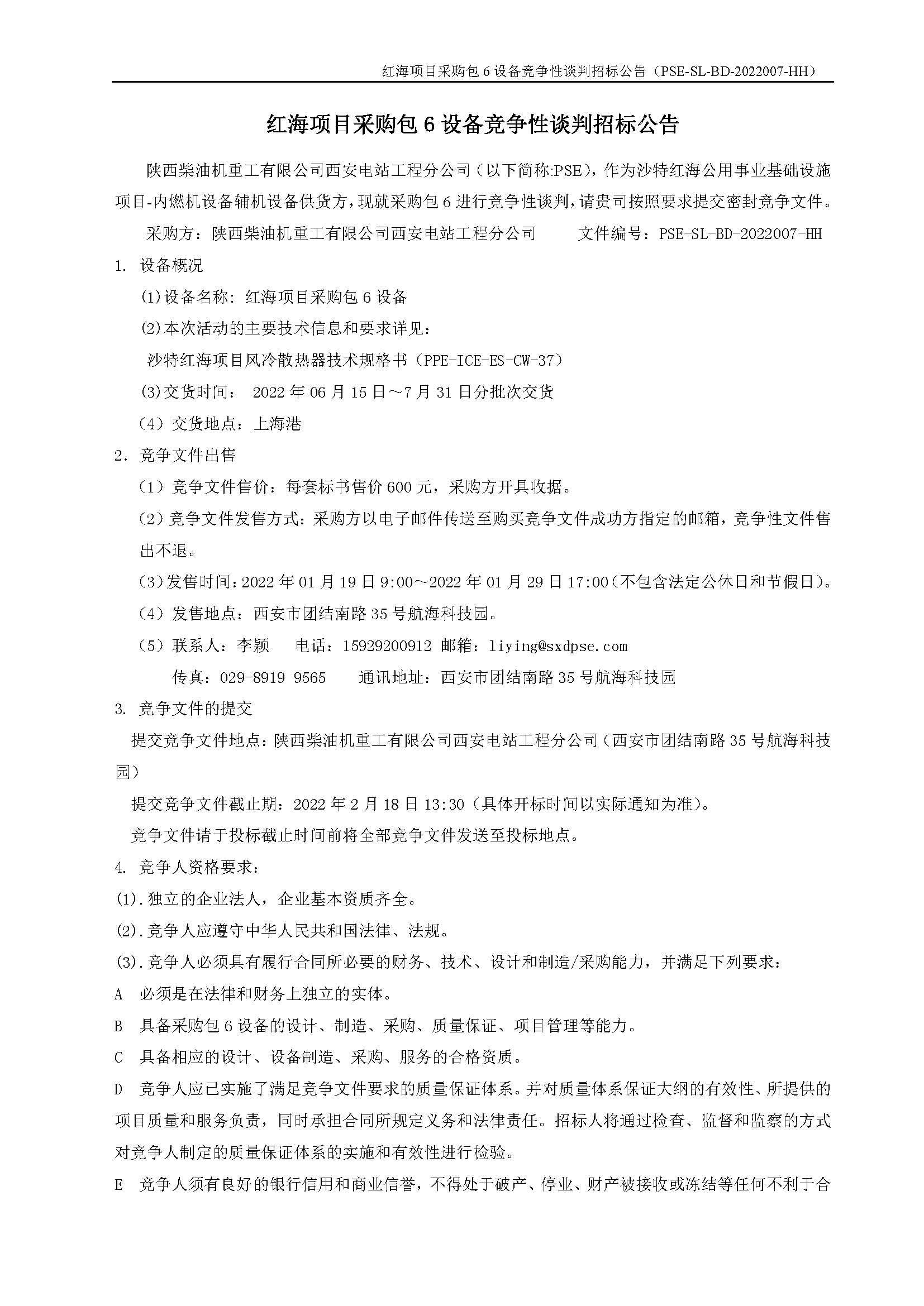 紅海項(xiàng)目采購包6設(shè)備競(jìng)爭(zhēng)性談判招標(biāo)公告